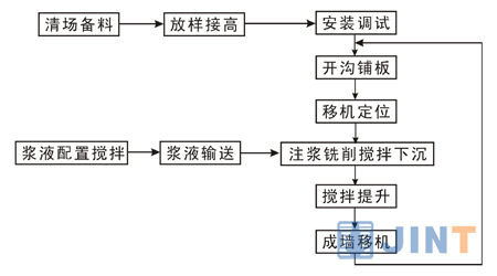 我公司自主研發的C60液壓銑削攪拌鉆機,吸收了國外先進技術和綜合國內十多年來的地下連續墻施工經驗,結合雙輪銑和多軸鉆機的的優點,集銑削和攪拌為一體的新型設備,并采用國際先進的CSM工法施工。CSM工法主要分為下鉆成槽、上提成墻兩部分,有施工快捷、施工噪音小、成墻質量好、搭接面積少、適應各種復雜地層等優點。