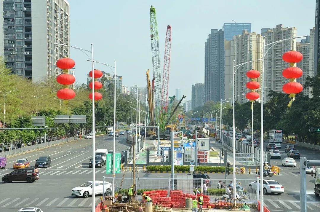 小編在車流如織的寶安大道上看到,僅有3車道,如此狹窄的施工作業(yè)面上,將建起一座粵港澳大灣區(qū)城際鐵路的三線換乘車站,無異于“螺螄殼里做道場”,難上加難。但是,項目的業(yè)主單位和參建者克服種種困難,在盡量不影響交通的情況下快馬加鞭搞建設。